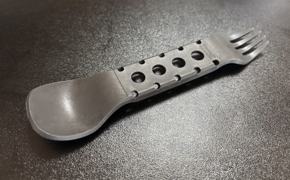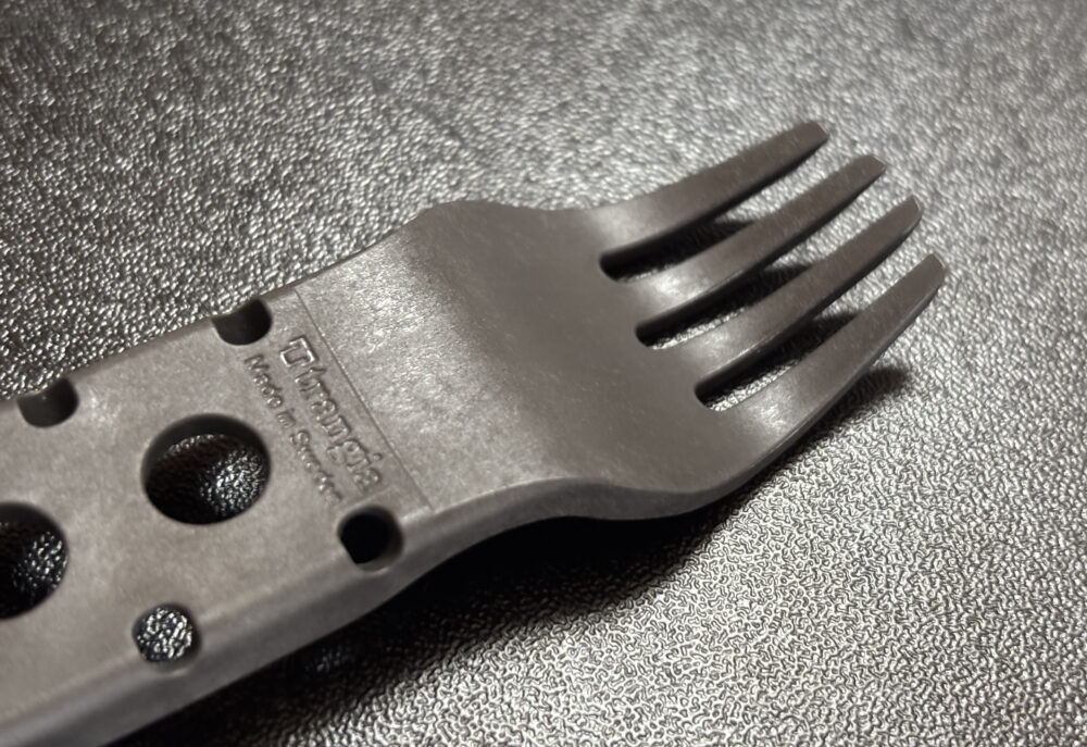 見た目に惹かれて購入しましたが、実際のアウトドアでは少し使いづらいそうです。スプーンとフォークが一体なのは面白いものの、持ち手が短いので持ちづらく、またスプーンの方の先も小さいです。